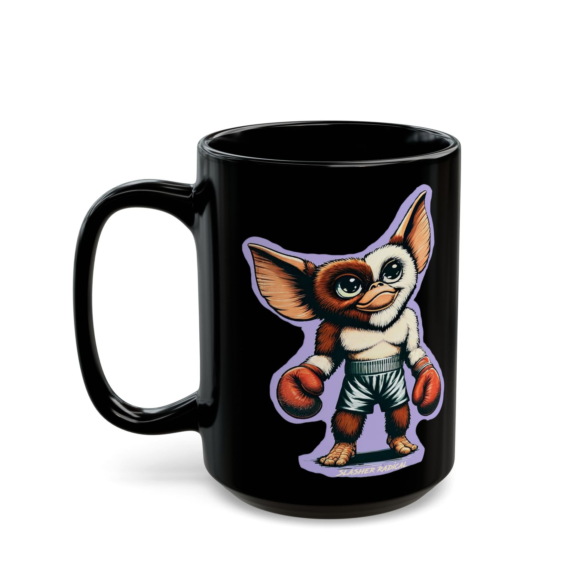 Both our Boxing Gremlin and Boxing Gizmo on a Coffee Mug.